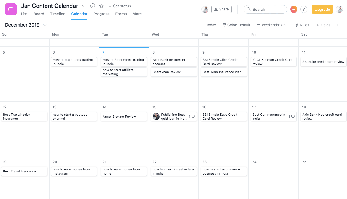 Sharing this month's content calendar with you