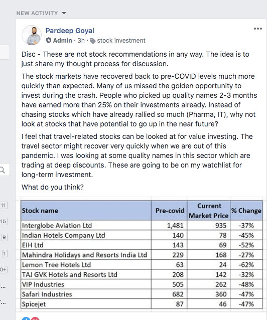 After a long time, I am restarting engagement in the "Banking & Investment Ideas by CashOverflow" Facebook group.