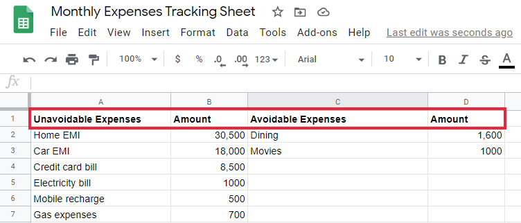 You can make a separate column in the sheet for unavoidable expenses and avoidable expenses.